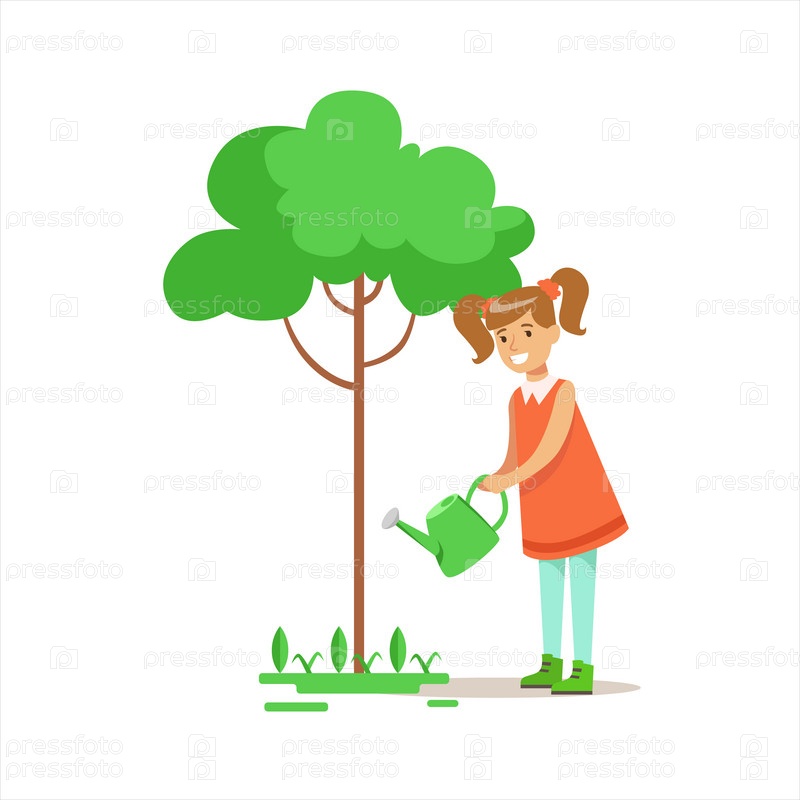 Девочка, поливающая дерево