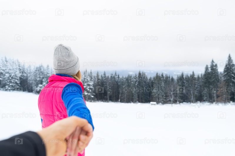 Молодая пара зимой в горах