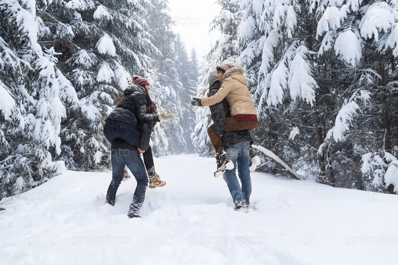 Друзья в снежном лесу