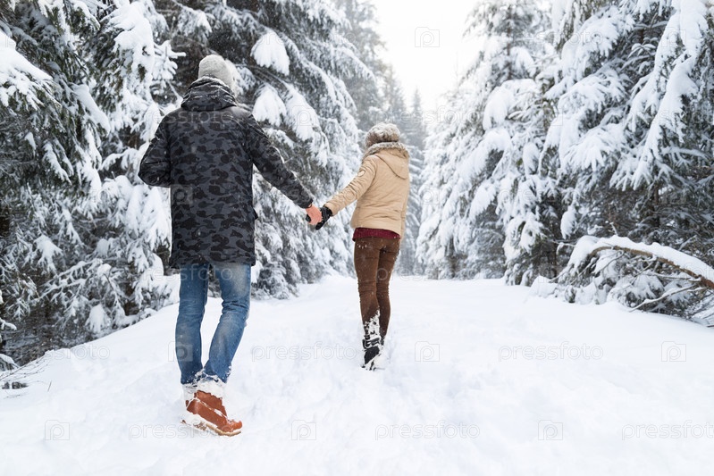 Молодая пара в зимнем лесу