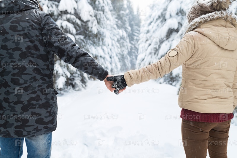 Молодая пара в зимнем лесу