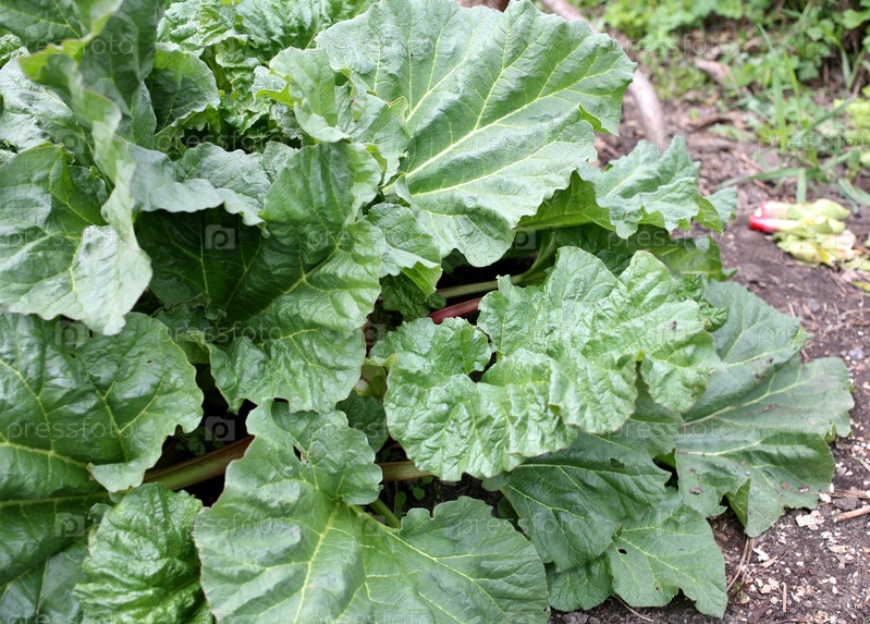 Молодой ревень в саду