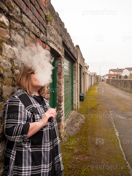 Зрелая женщина курит электронную сигарету