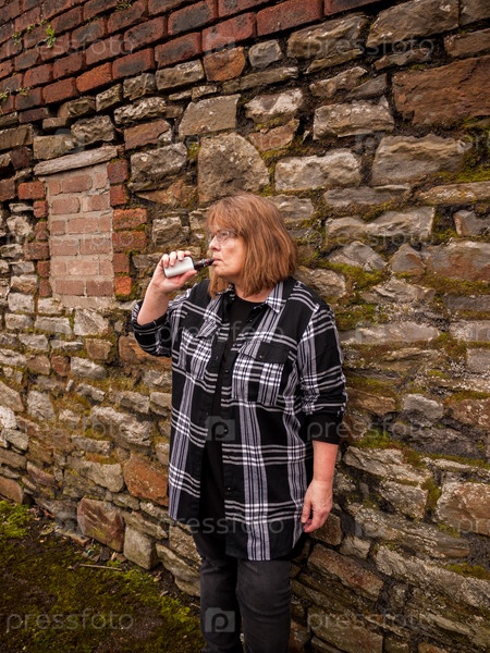 Зрелая женщина курит электронную сигарету