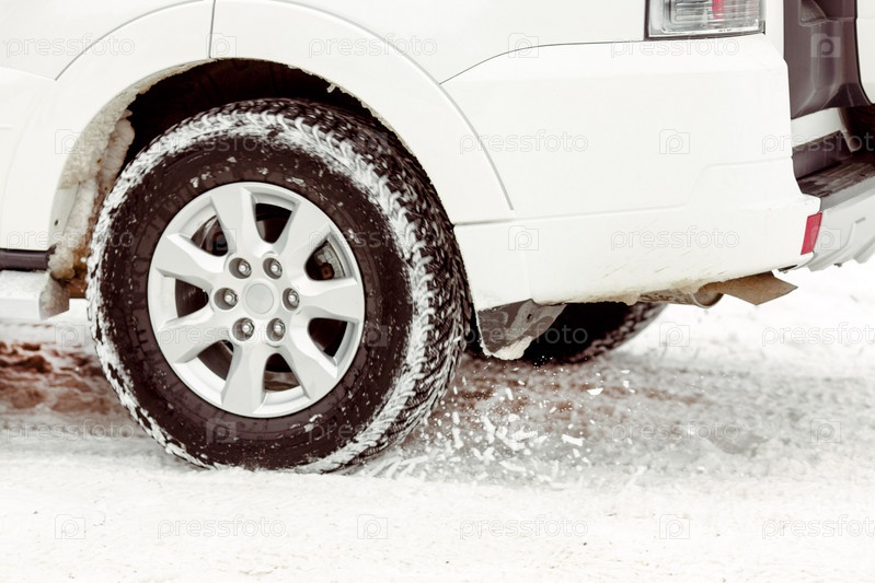 Колесо машины на зимней дороге
