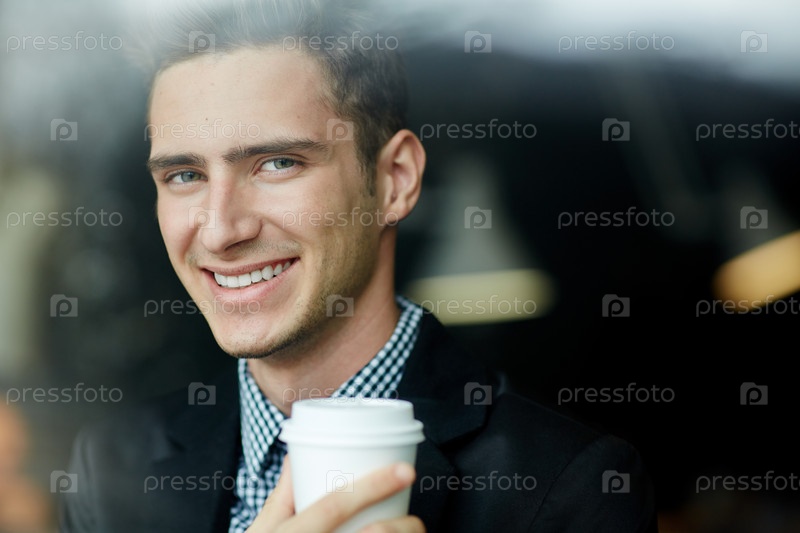 Красивый молодой человек с кофе