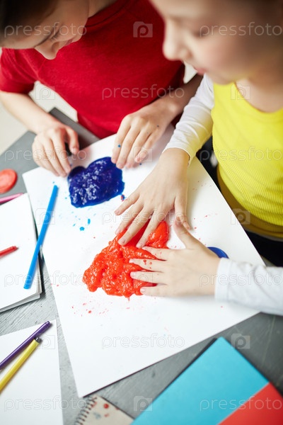 Девочки, играющие с пластилином в центре развития ребенка