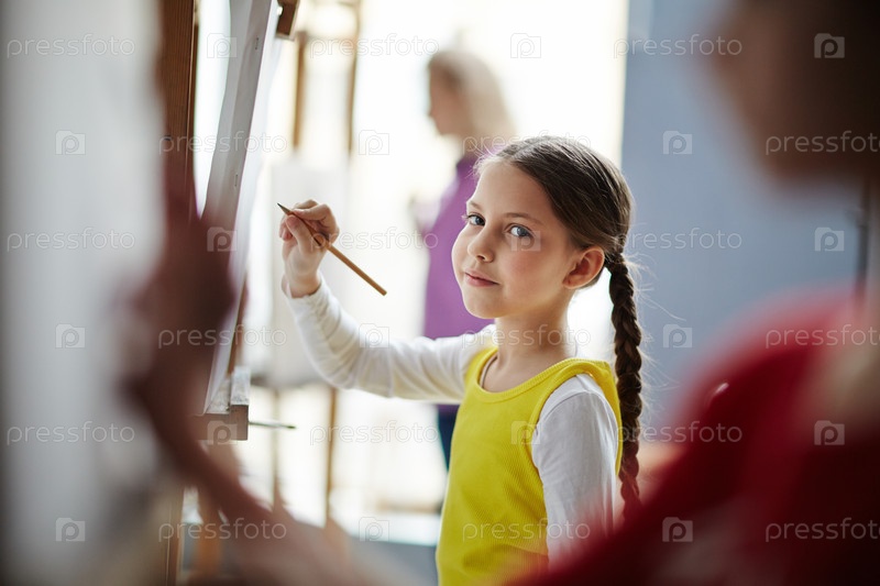 Дети рисуют на мольбертах в художественном классе