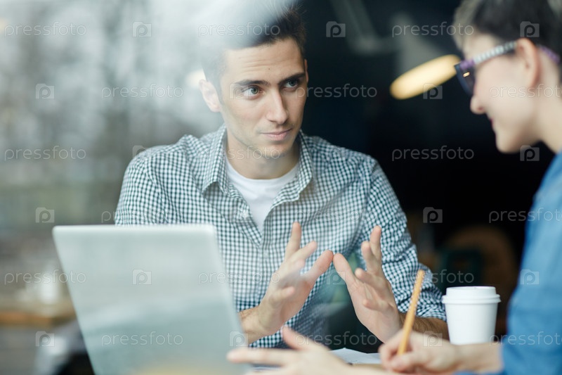 Молодые бизнесмены обсуждают идеи запуска