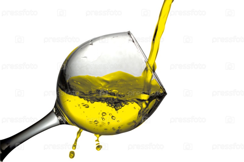 Сухое белое вино наливают в стакан