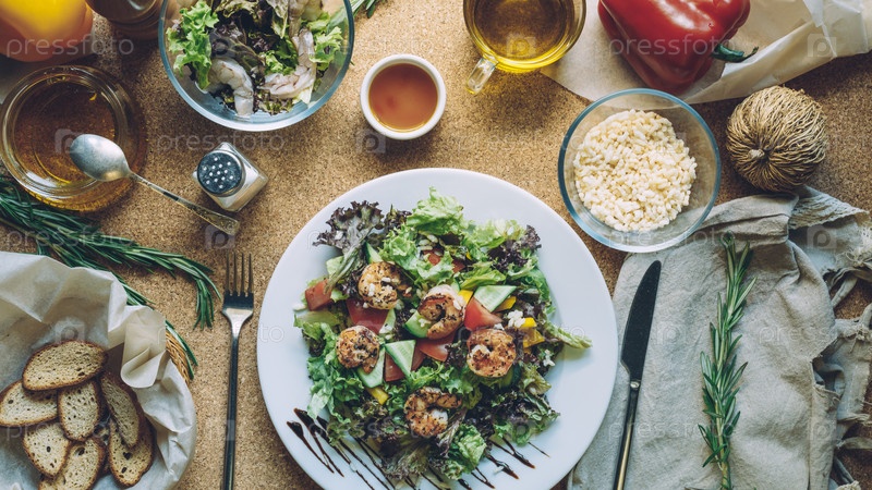 Свежий и здоровый салат с креветками