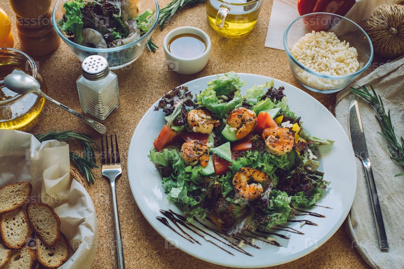 Свежий и здоровый салат с креветками