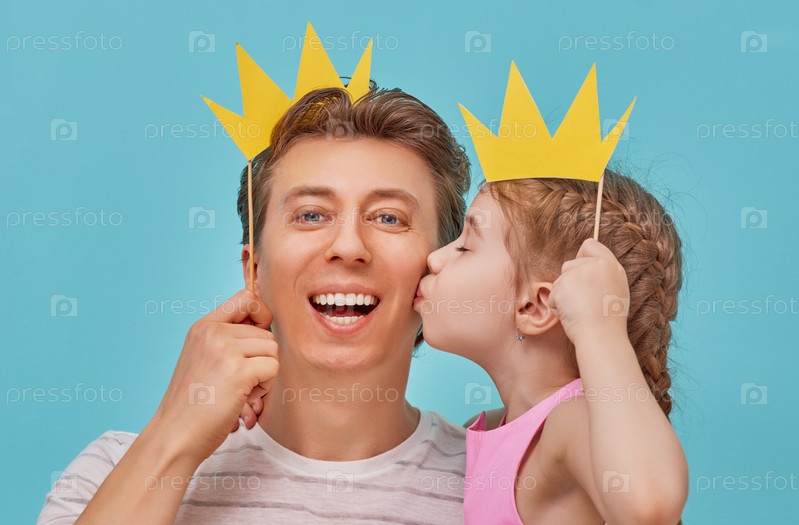 Папа и ребенок держат бумажную корону