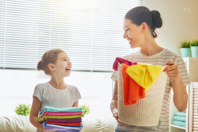 Семья после стирки дома