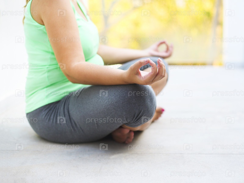 Красивая беременная в позе лотоса в летний вечер