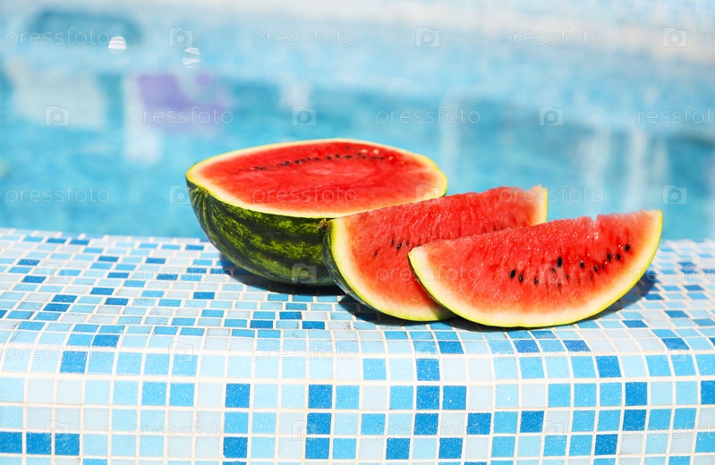 Кусочки арбуза у бассейна