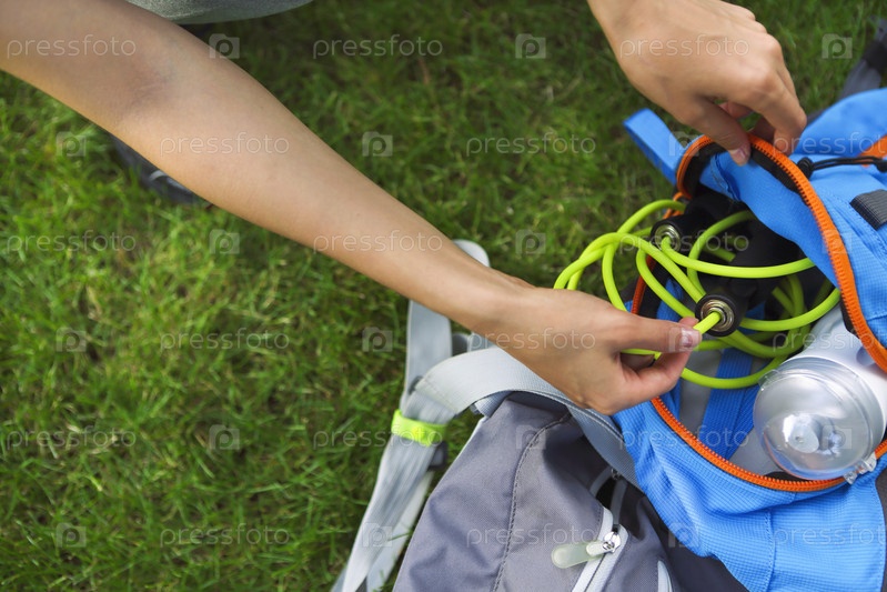Женщина со спортивными аксессуарами