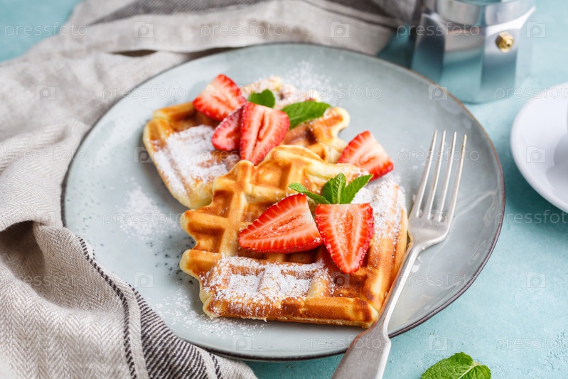 Домашние вафли с клубникой