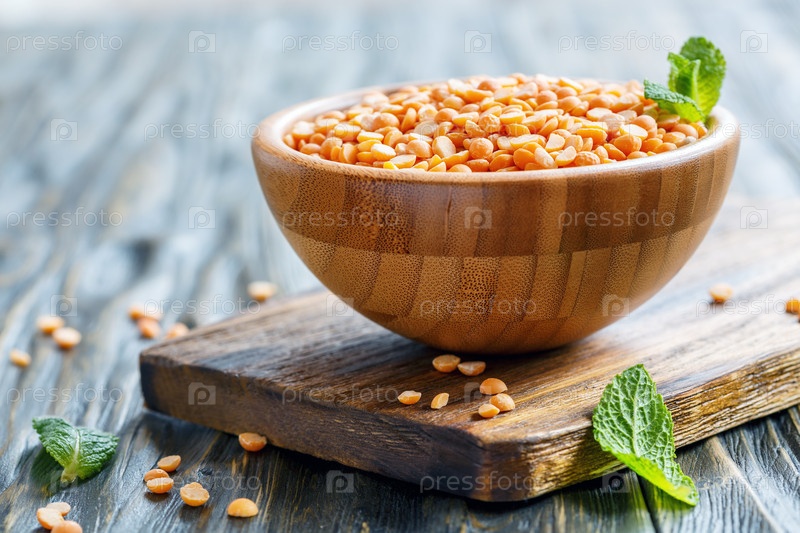 Желтый горошек в деревянной миске