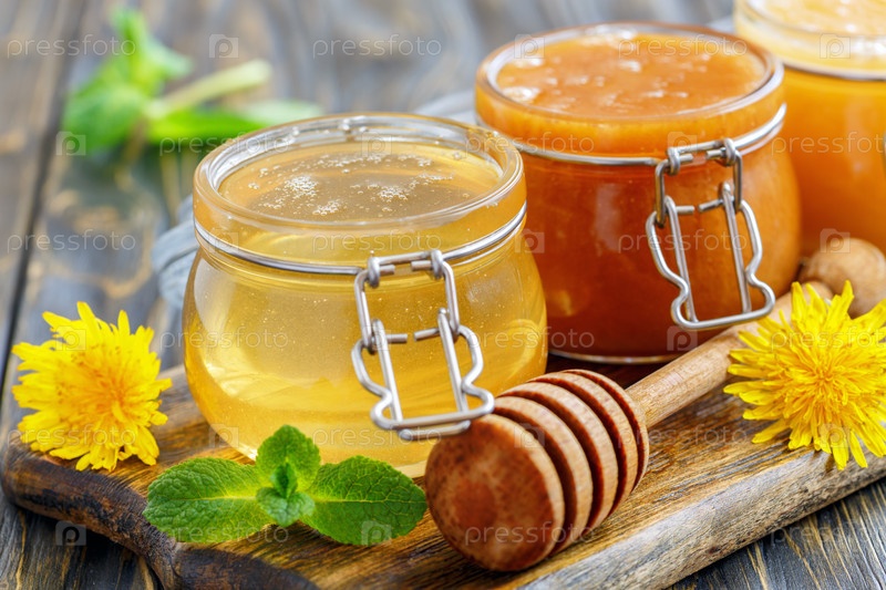 Липовый и гречишный мед в стеклянных банках