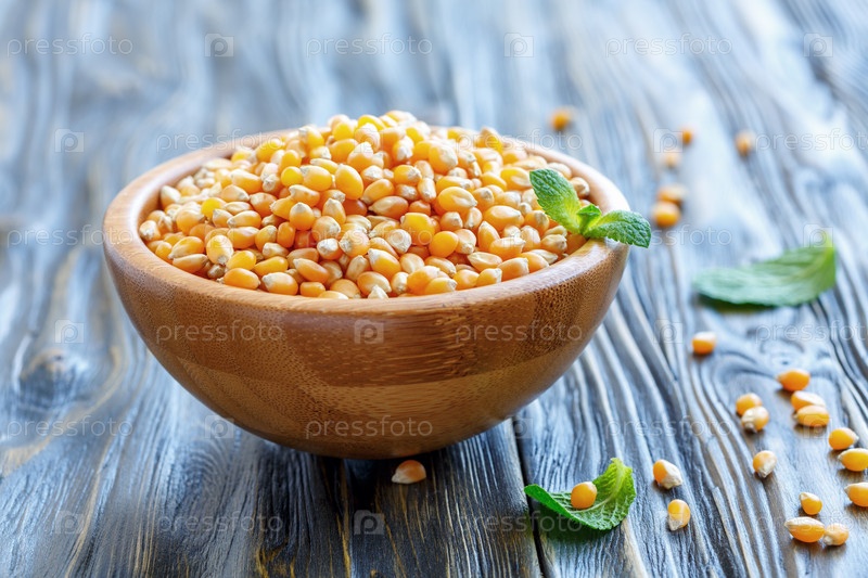 Кукуруза для попкорна в деревянной миске
