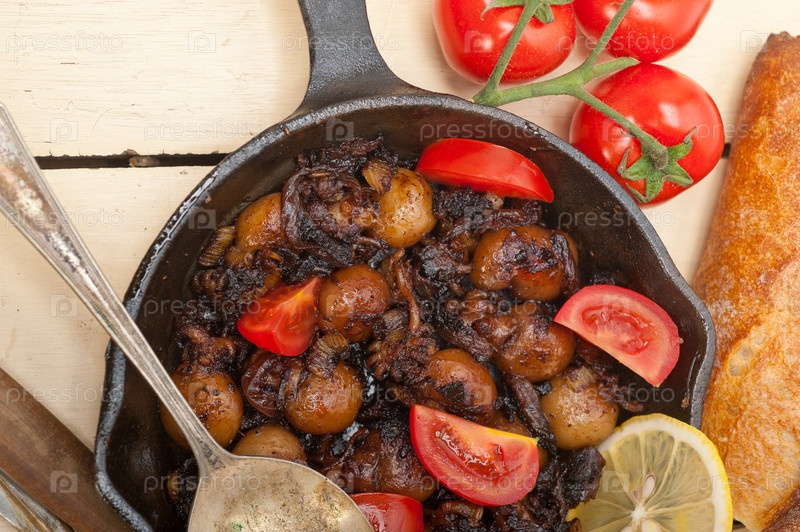 Жареные морепродукты с помидорами