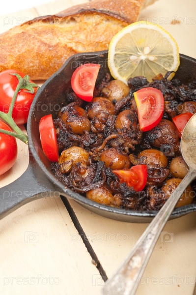 Жареные морепродукты с помидорами