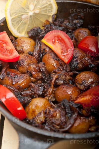 Жареные морепродукты с помидорами