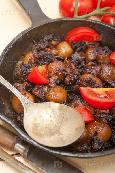 Жареные морепродукты с помидорами