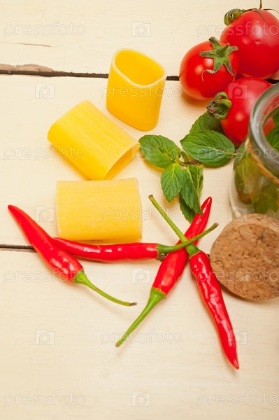 Итальянские макароны паккери с томатами, мятой и перцем чили