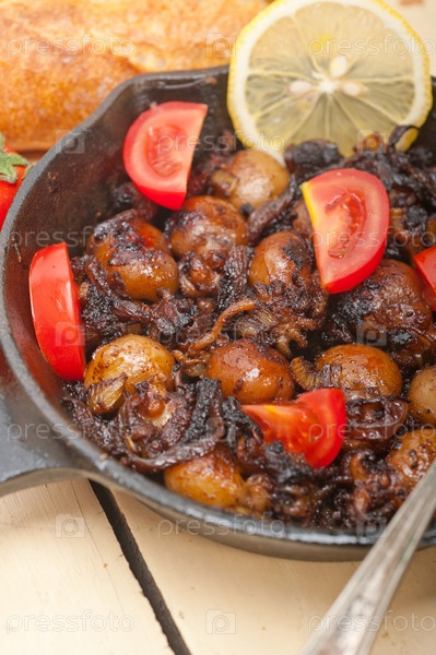 Жареные морепродукты с помидорами