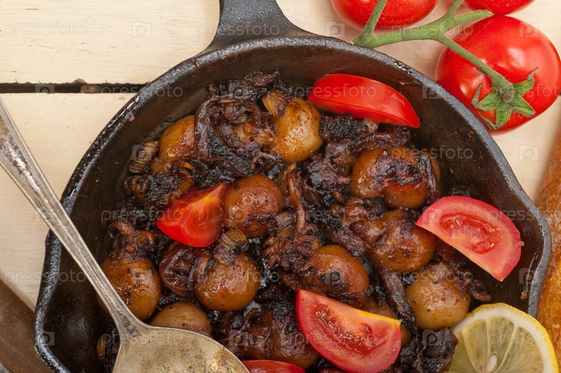 Жареные морепродукты с помидорами