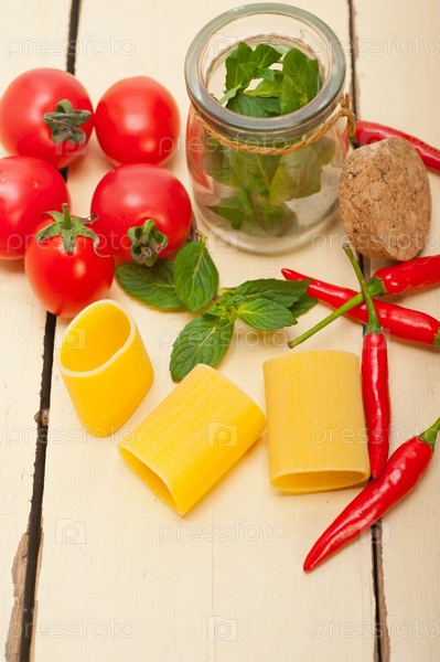 Итальянские макароны паккери с томатами, мятой и перцем чили