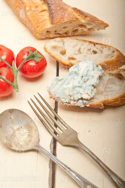 Свежий синий сыр на французском багете