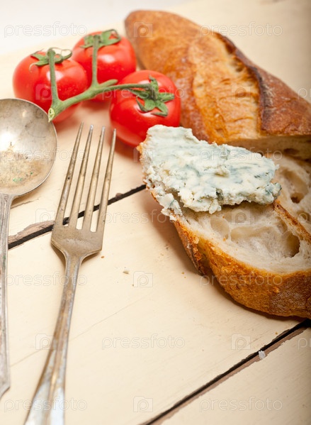 Свежий синий сыр на французском багете