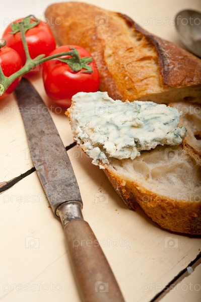 Свежий синий сыр на французском багете