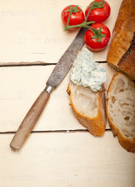 Свежий синий сыр на французском багете