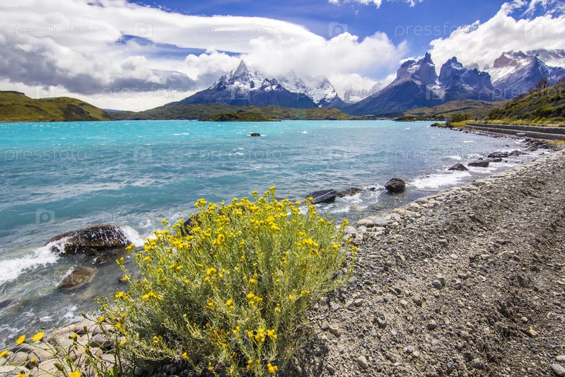 Горы Патагонии при дневном свете с голубым озером