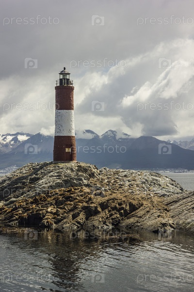 Маяк на острове с морскими котиками рядом с Ушуайя, Аргентина