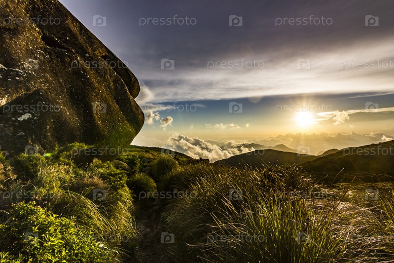 Красочный закат над горами Бразилии