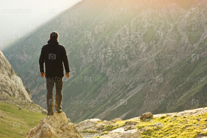 Человек на камне в горах