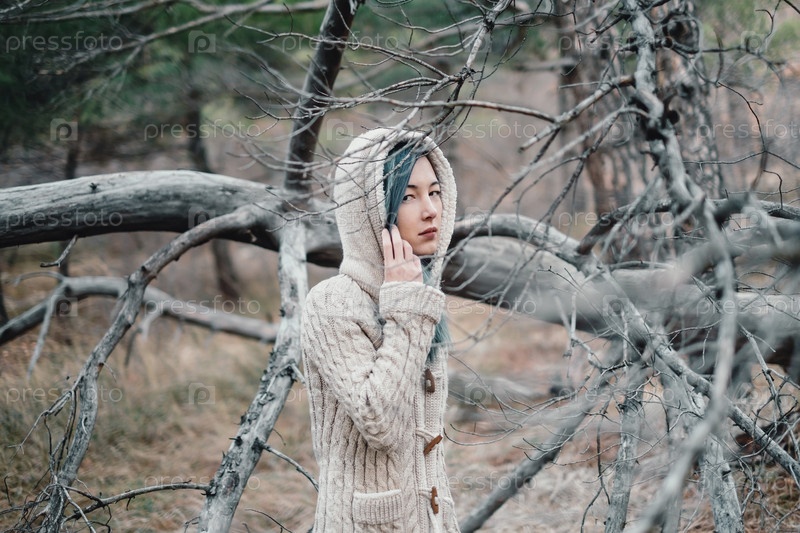 Грустная девушка в лесу