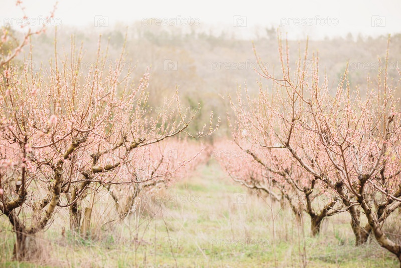 Сад весенних персиковых деревьев