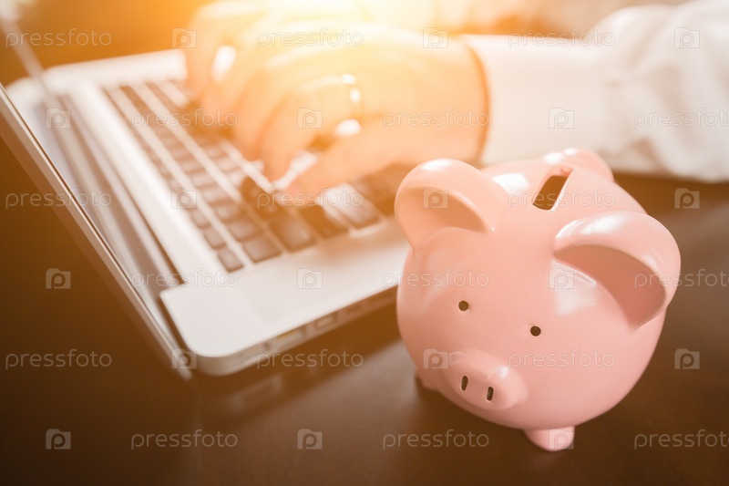 Копилка возле мужской руки