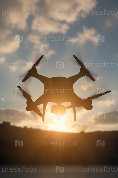 Дрон в воздухе на рассвете