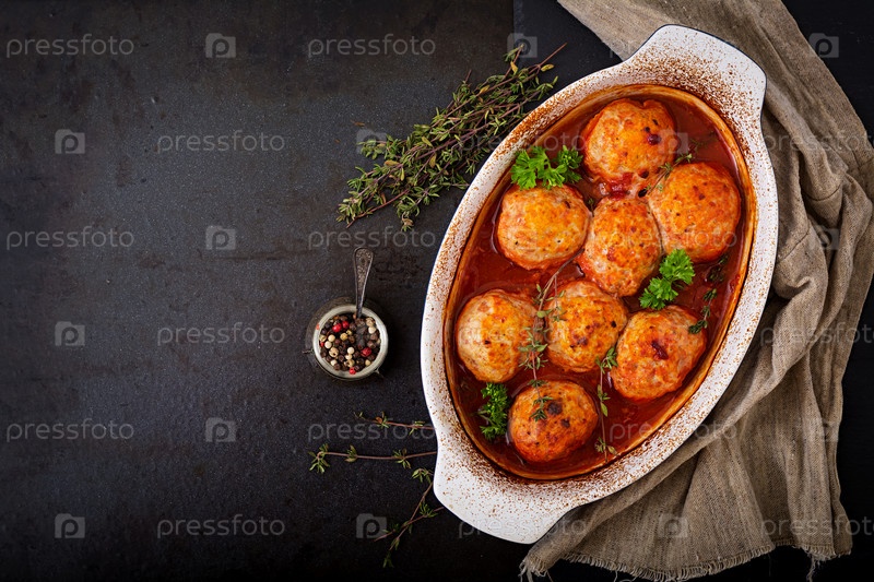 Запеченные фрикадельки куриного филе в томатном соусе