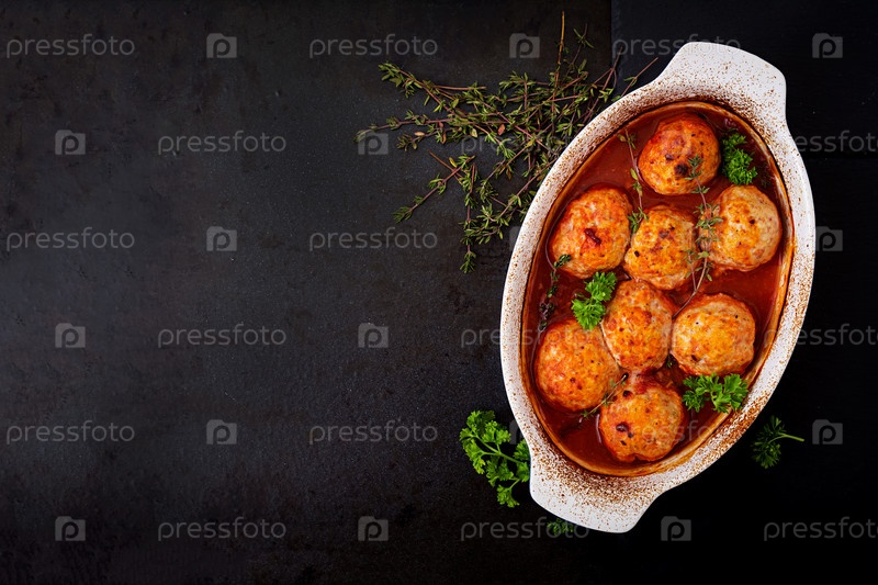 Запеченные фрикадельки куриного филе в томатном соусе