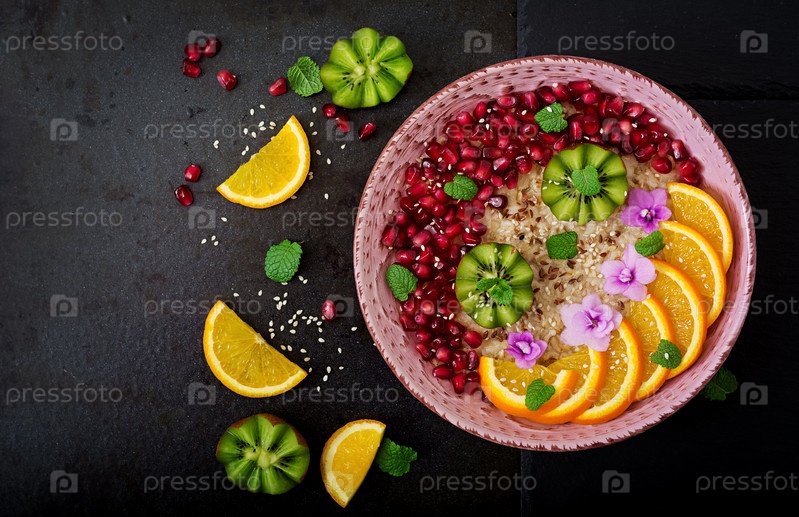 Вкусная и полезная овсяная каша с фруктами, ягодами и льняными семенами