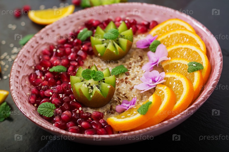 Вкусная и полезная овсяная каша с фруктами, ягодами и льняными семенами