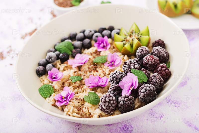 Вкусная и полезная овсяная каша с фруктами, ягодами и льняными семенами